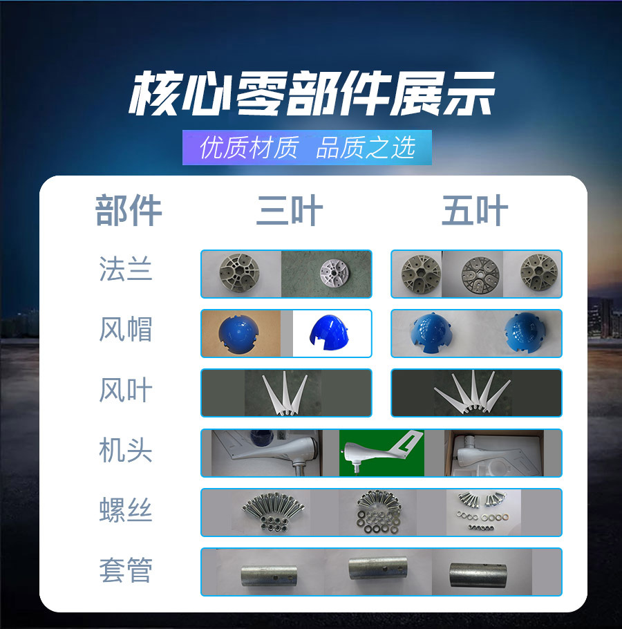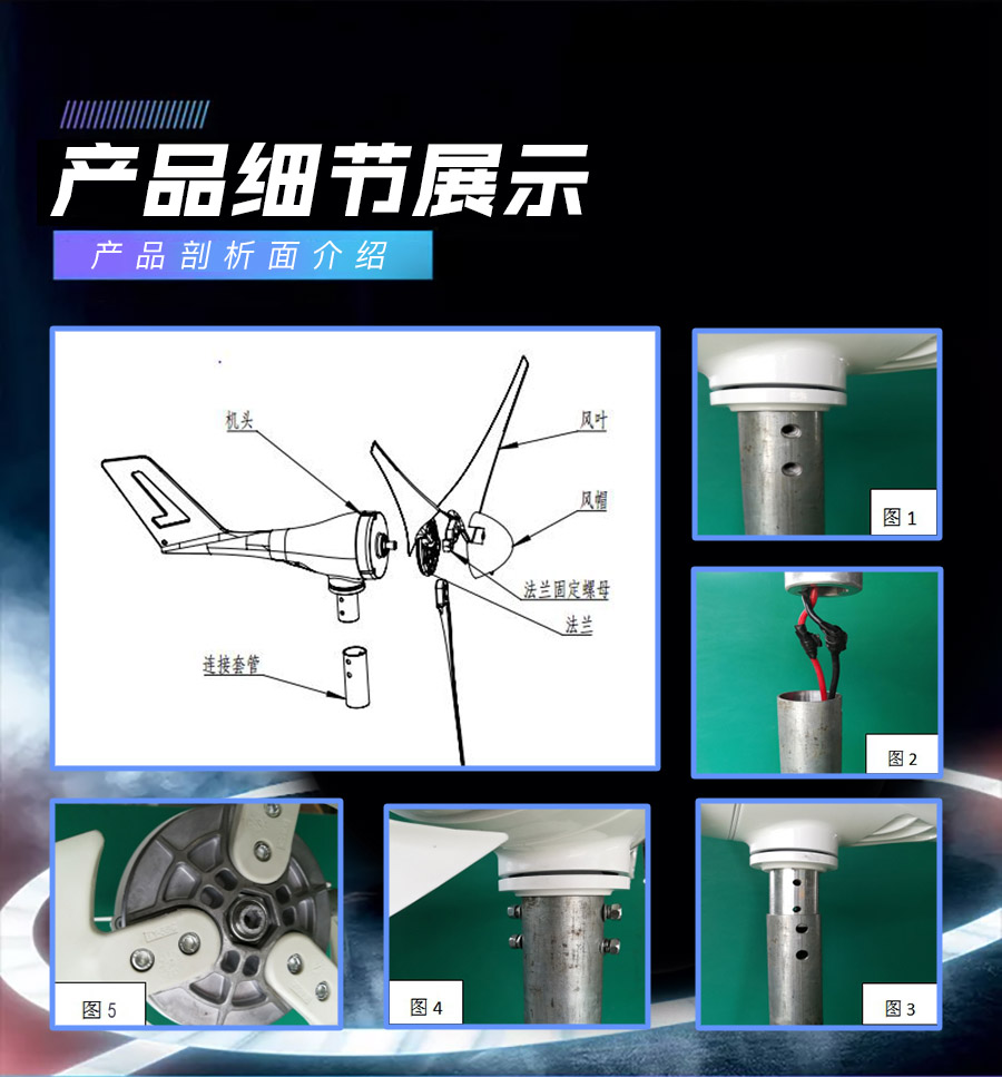 3、風(fēng)葉采用高強度復(fù)合材料,強度高,韌性好,防紫外線,防腐蝕,抗大風(fēng),具有良好的氣動性能。