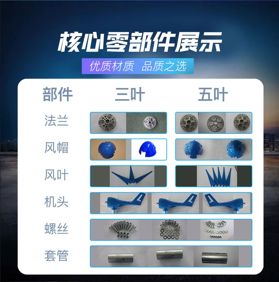 3、風(fēng)葉采用高強度復(fù)合材料,強度高,韌性好,防紫外線,防腐蝕,抗大風(fēng),具有良好的氣動性能。
